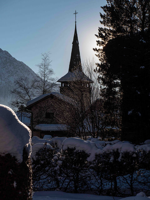 Le hameau des Praz, situé à 30 minutes à pied du centre-ville de Chamonix, jouit d'un environnement privilégié face à l'Aiguille du Midi et au Mont-Blanc.